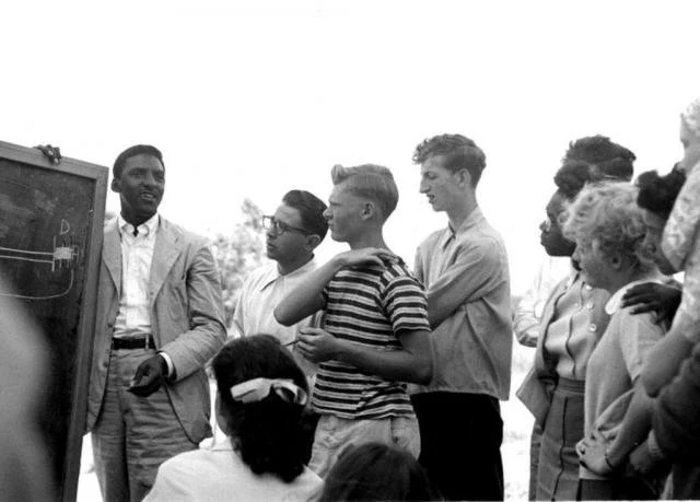 Bayard Rustin at the blackboard. Also see this collection of photos and primary documents from the Rustin Estate.